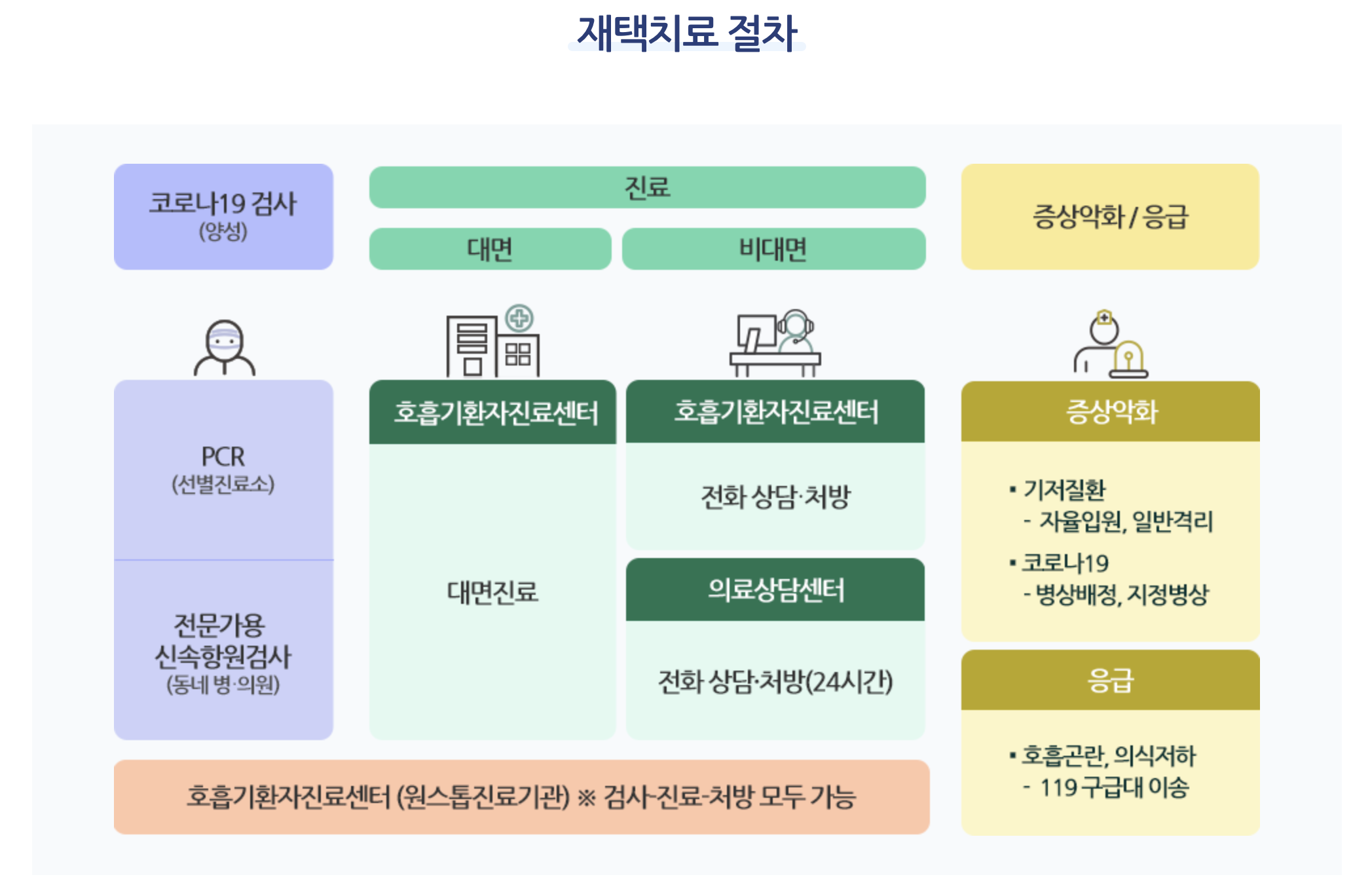 각설하고, 현 상황에서는 생명이 위급한 사람을 제외하고는 재택치료를 하고 있습니다. 절차와 궁금증에 대해 한번 알아보겠습니다.