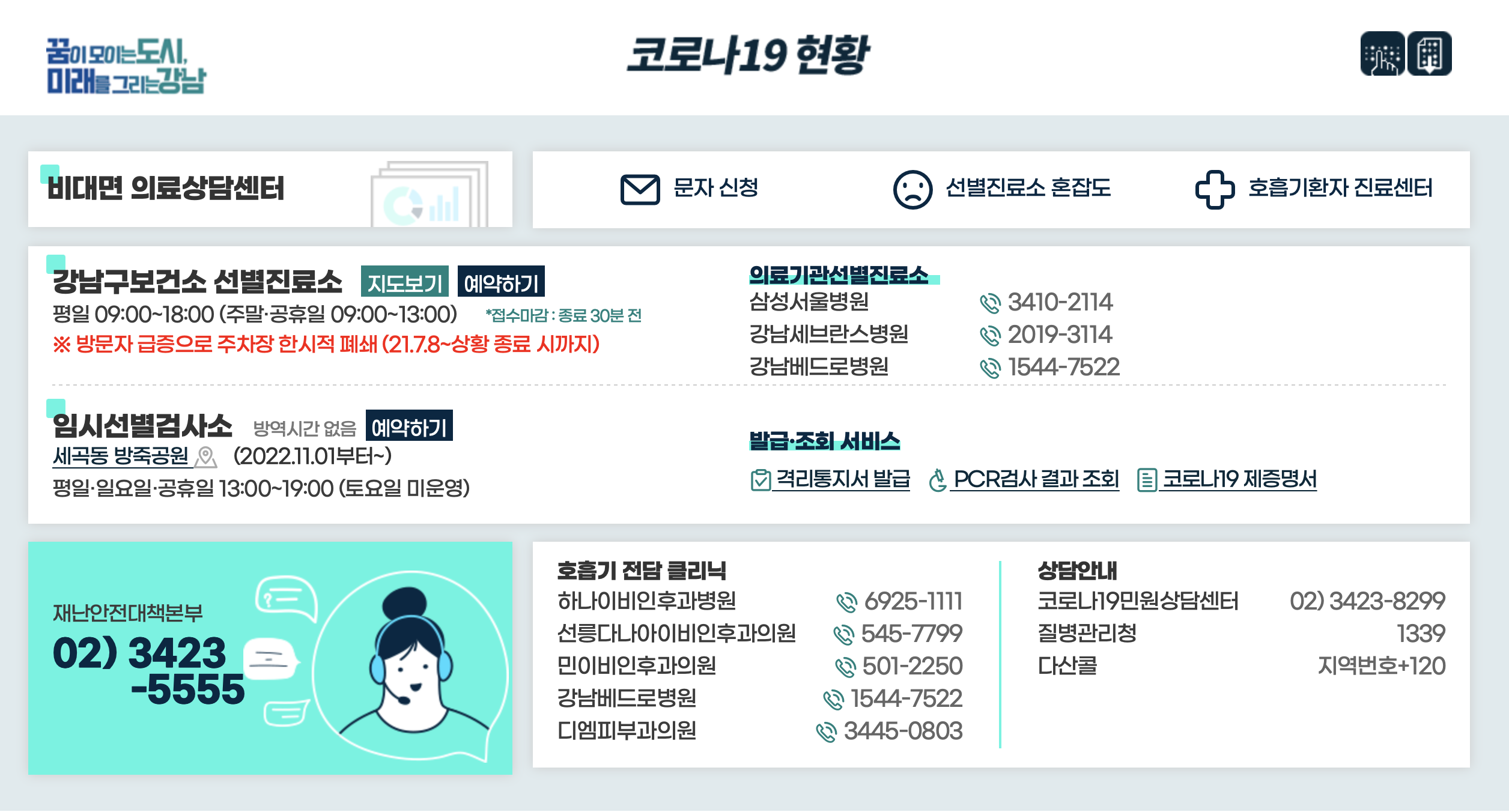 오늘은 이렇게 강남구 보건소의 선별진료소와 임시선별진료소, 예약방법에 대해서 알아보았습니다.