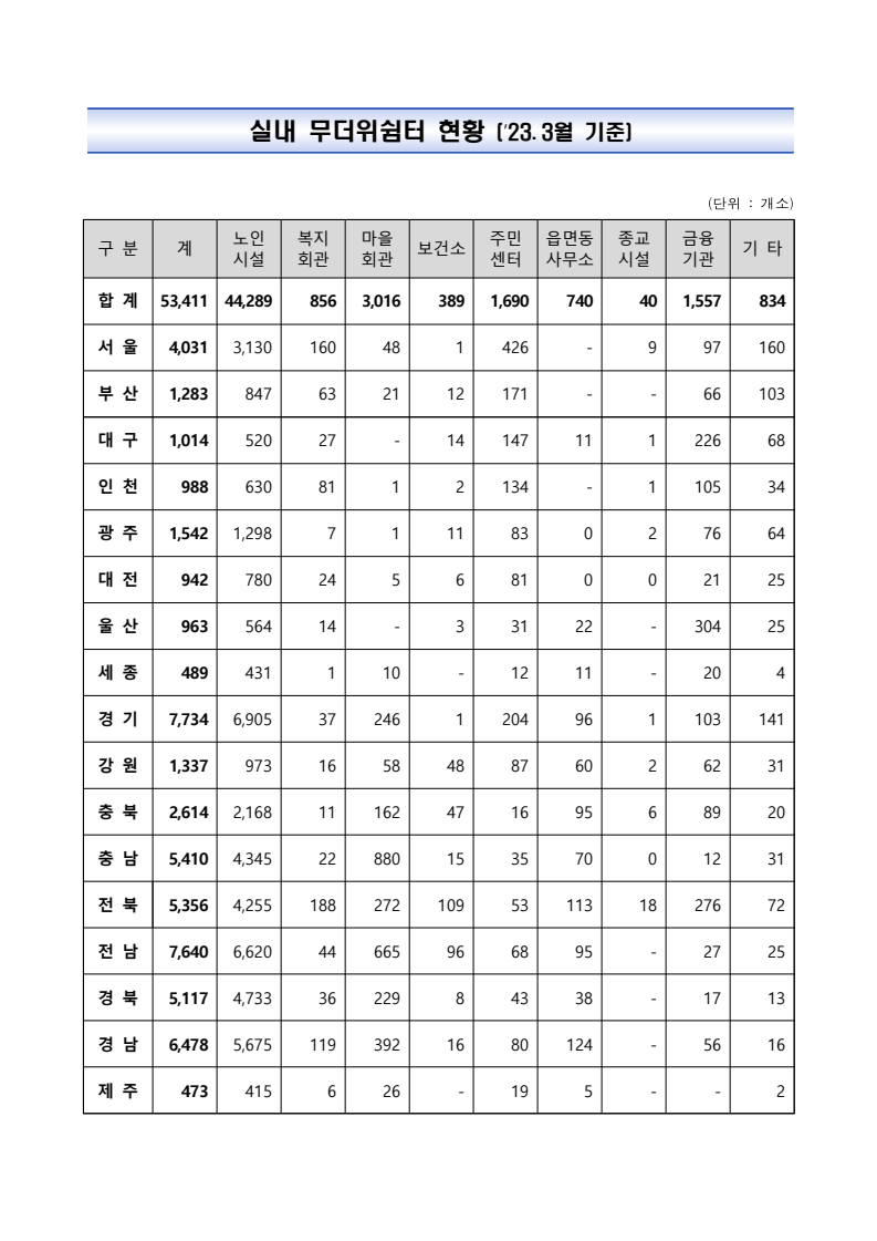 공공기관에서 경로당이나 행정복지센터, 복지관 등 냉방시설이 갖추어진 시설을