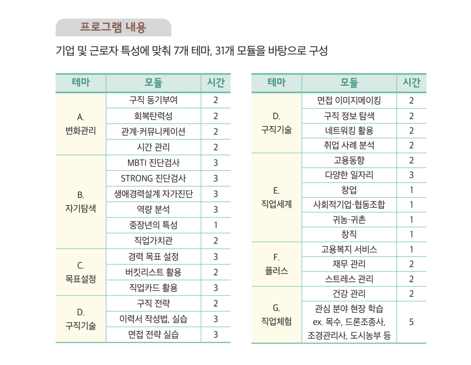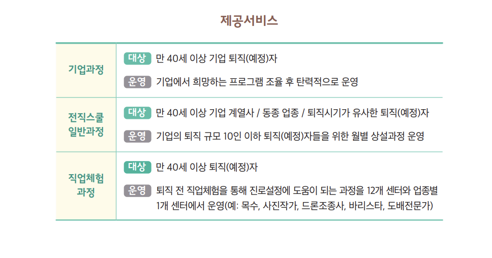 퇴직예정자가 실직의 불안감을 해소하고 원활한 이직·전직을 할 수 있도록 지원