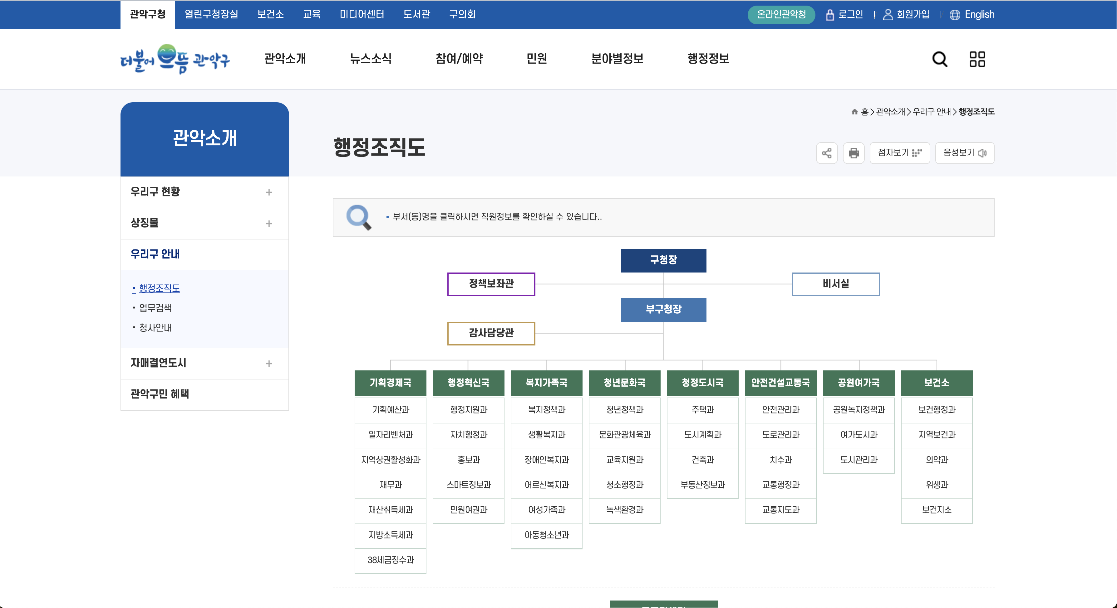 우리구 안내에 있는 행정조직도를 누릅니다.