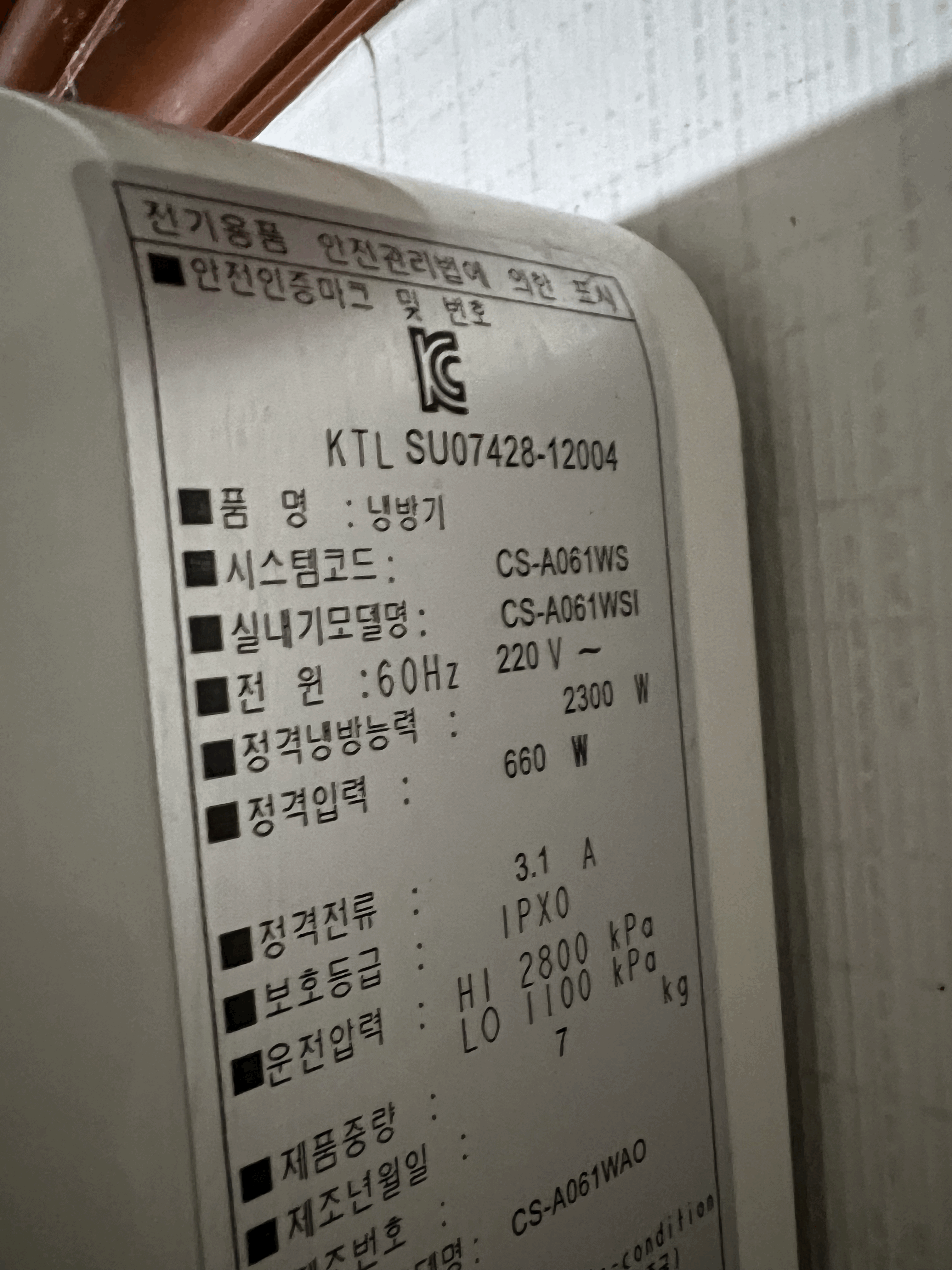 케리어 에어컨이고 cs-a061wsi라는 모델입니다.
