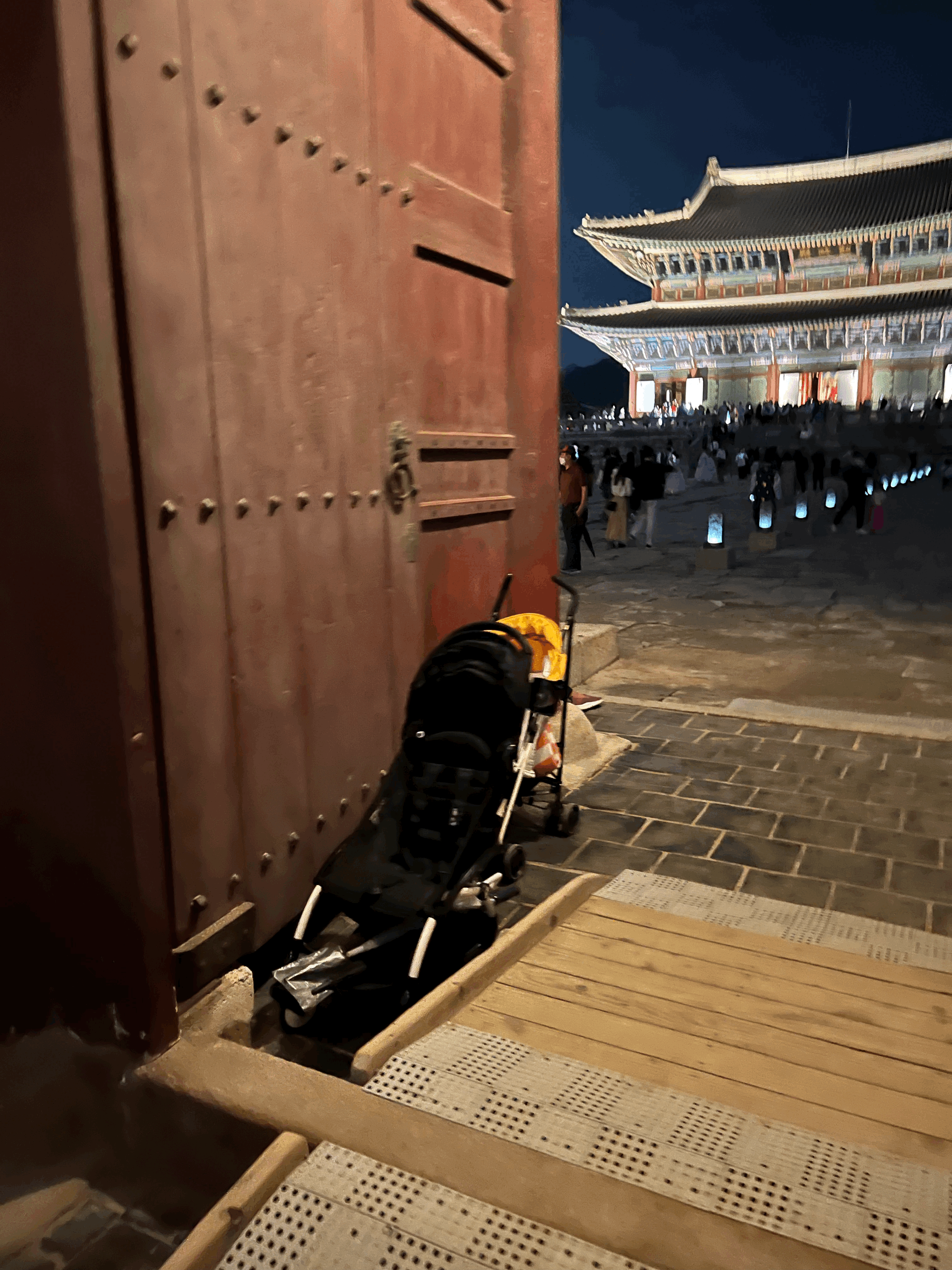 유모차는 처음부터 주차장에 놓고 가시는 것을 추천드립니다. 계단이나 턱이 많기 때문에 유모차를 계속해서 들어야 합니다. 사람들도 너무 많구요. 결국 다들 문옆에 유모차를 놓고 관람을 하십니다. 처음부터 짐이 되지 않게 차에 놓고 가시는것을 추천드립니다.